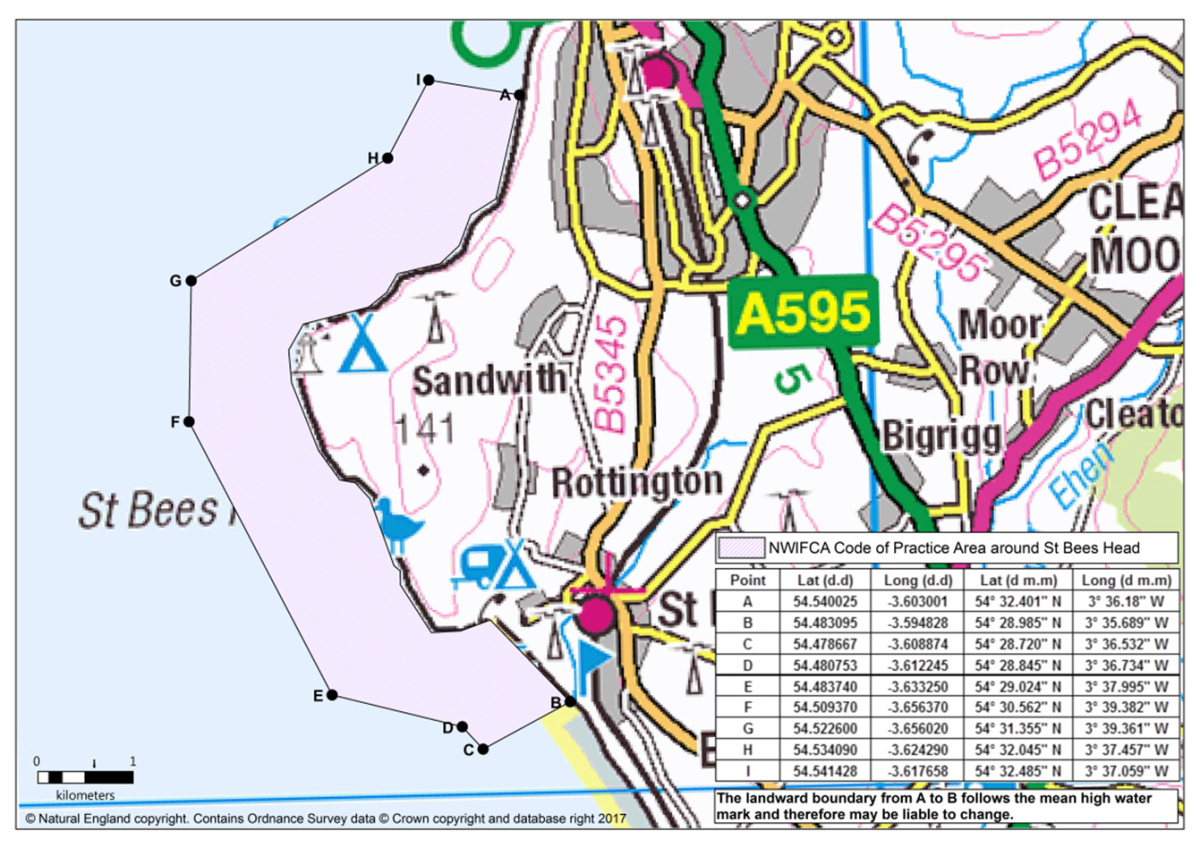 Note: St Bees Head is part of the Cumbria Coast Marine Conservation Zone (MCZ), is a Site of Special Scientific Interest (SSSI) notified under Section 28 of the Wildlife and Countryside Act 1981, and an RSPB Reserve.